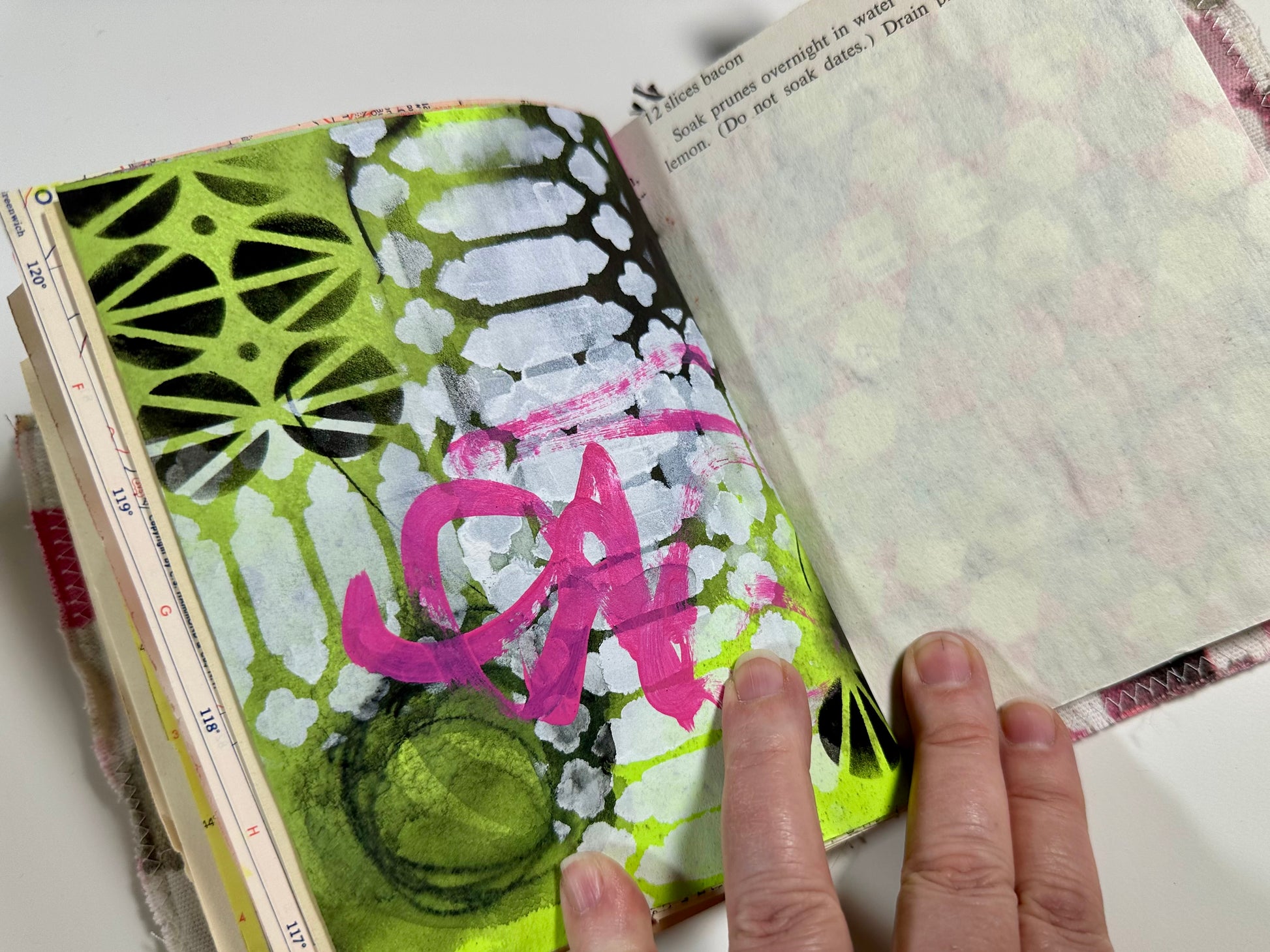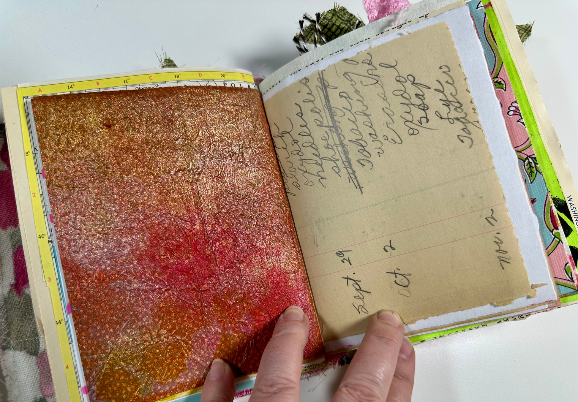 Capture your thoughts, sketches, and memories in a handmade journal filled with vintage charm. Each page is a unique canvas, blending hand-painted papers with antique ledger sheets, music notes, and maps. The quilted cover offers a touch of warmth and texture, making this journal a delight to hold and use. Designed for creatives on the move, it’s the perfect size to carry with you everywhere.