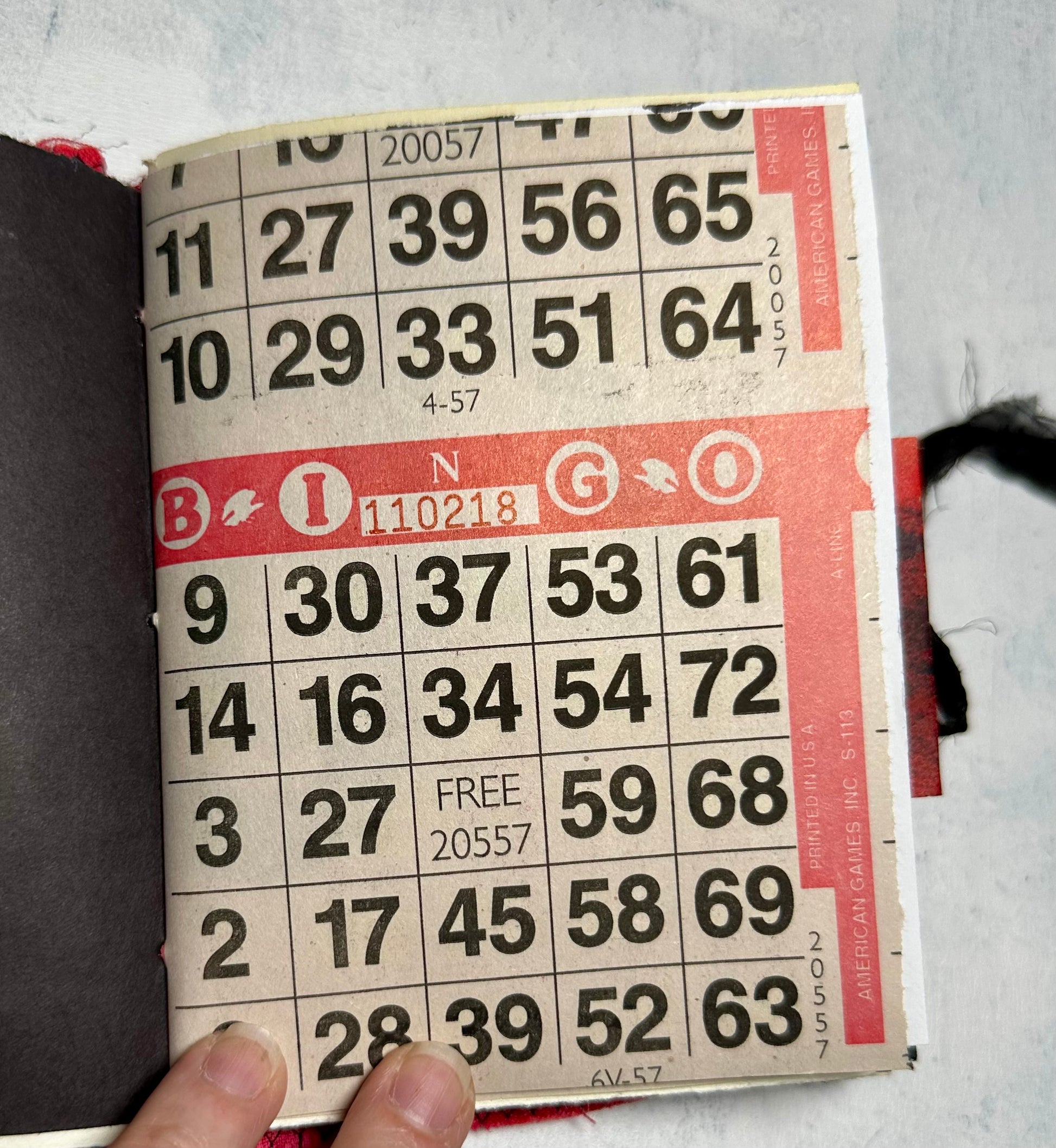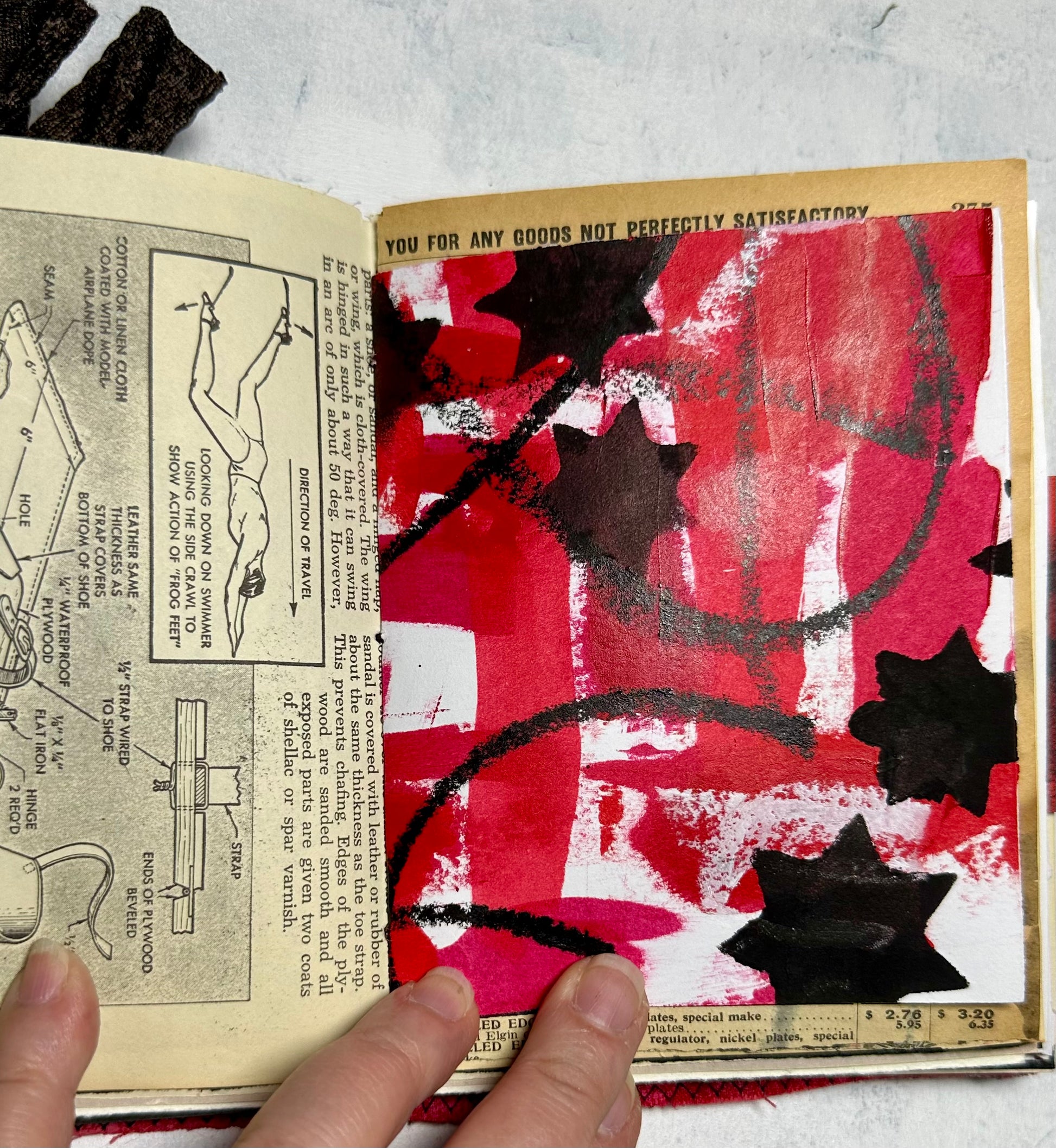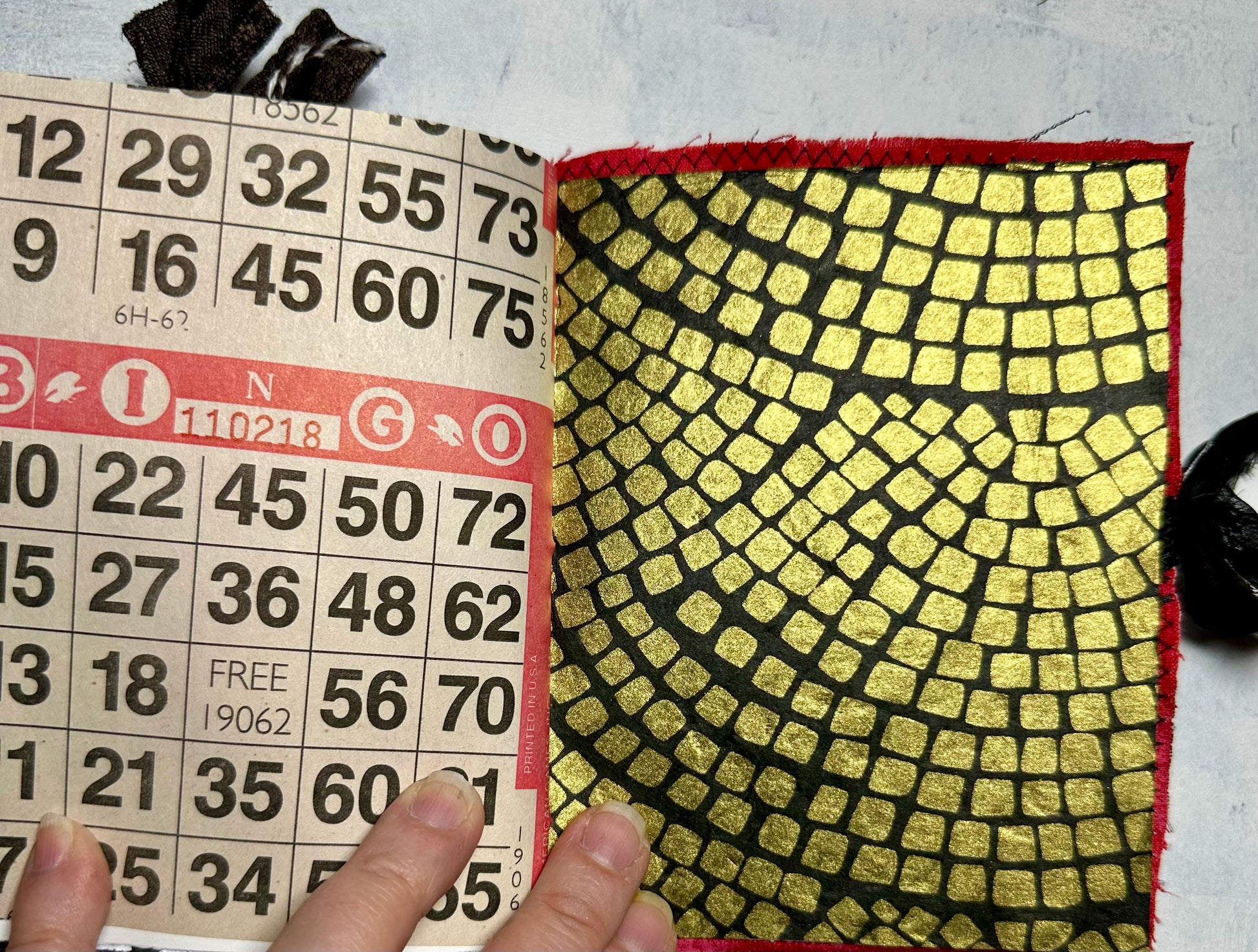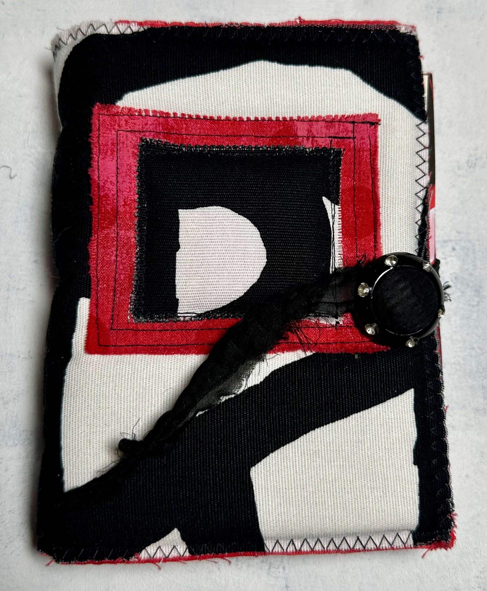 This journal has 144 pages, a quilted cover with a bold graphic feel. The journal has a sari ribbon & vintage button closure with plenty of room to expand. A unique piece, perfect as an art journal, memory book, or junk journal. Perfect size for journaling on the go.